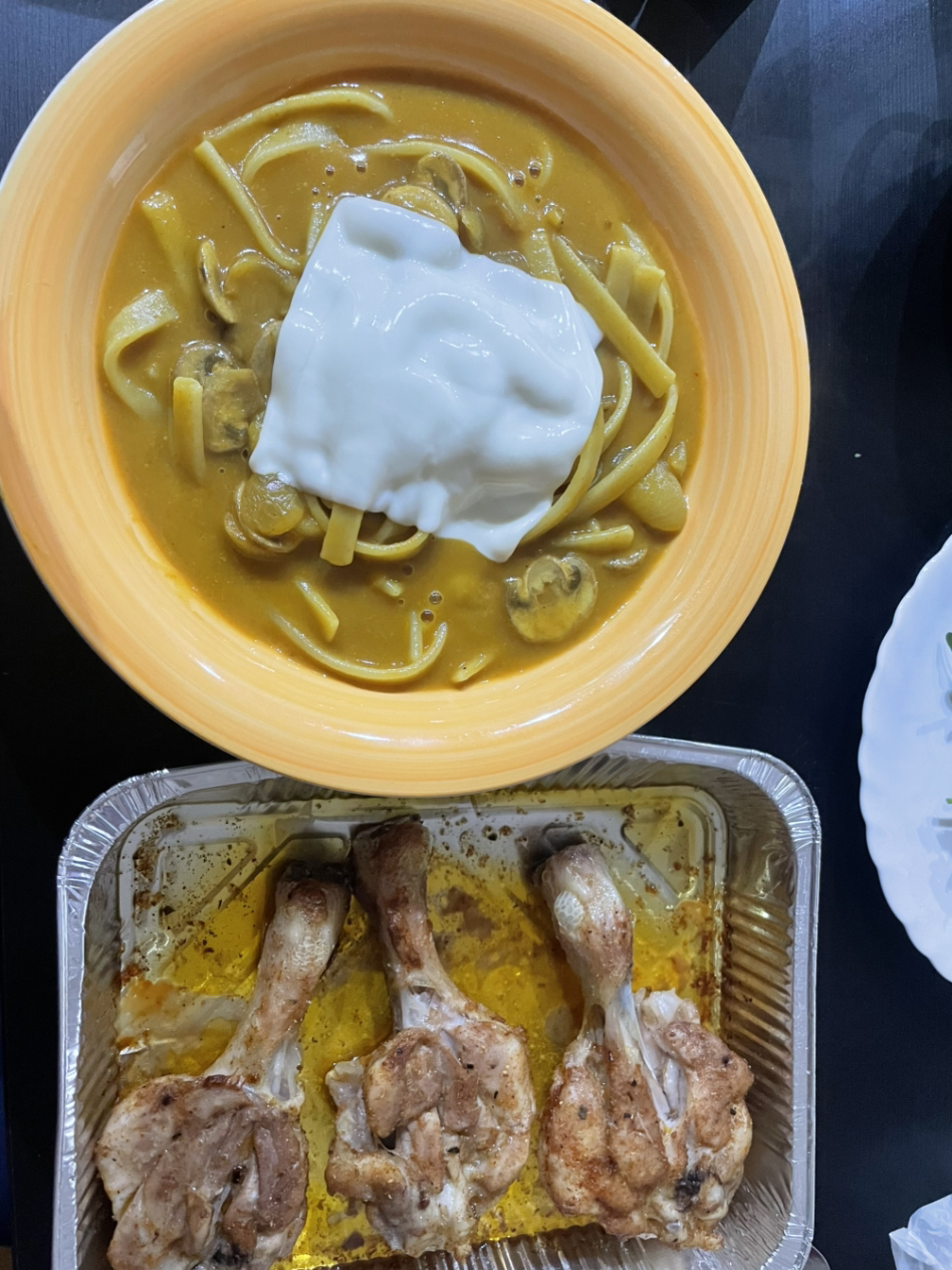 숙소에 돌아와 닭다리를 오븐에 굽고 카레를 해서 먹었다