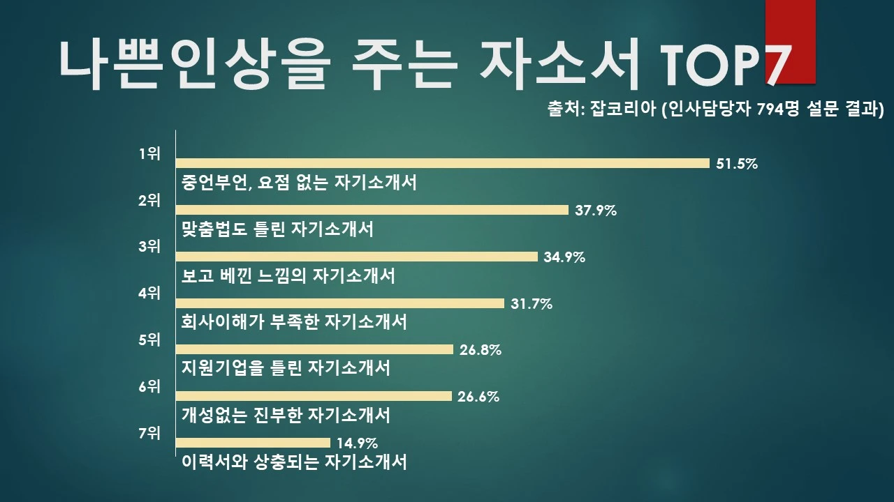 인사담당자 794명을 대상으로 조사한 나쁜 인상을 주는 자소서