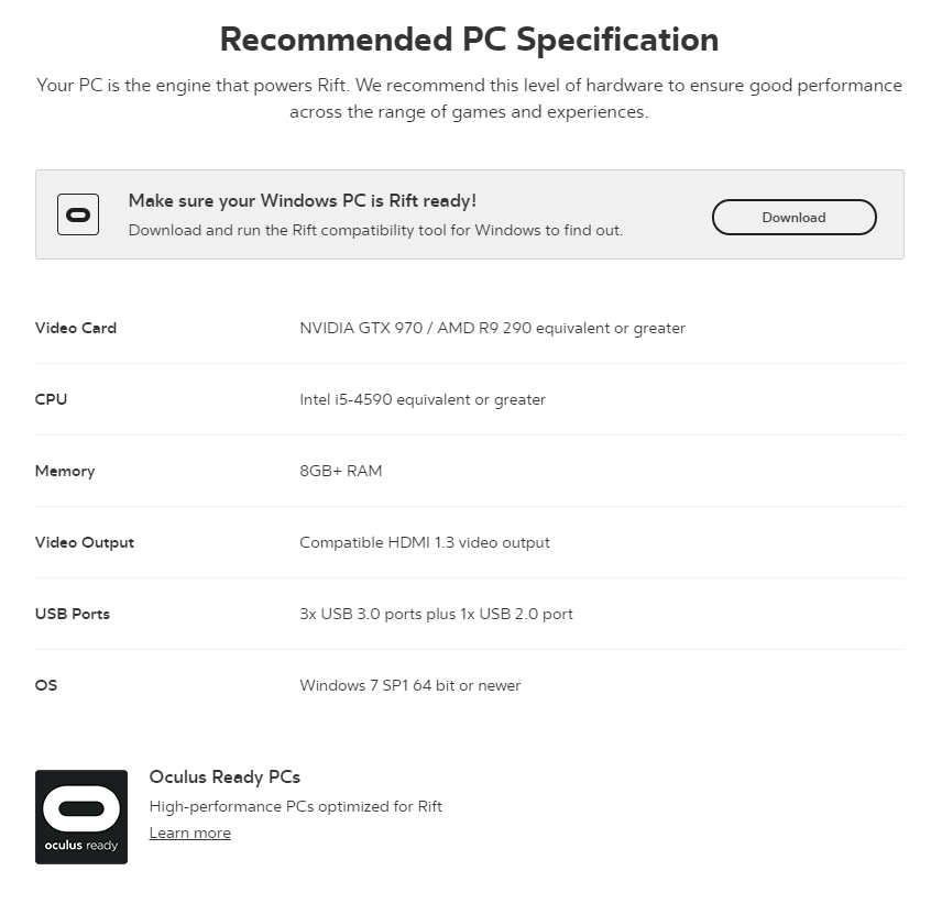 Oculus Ready PCs에 나온 가격표를 봐도 $949로 시작하니까 PC 구매에만 100만 원이 든다고 볼 수 있다.