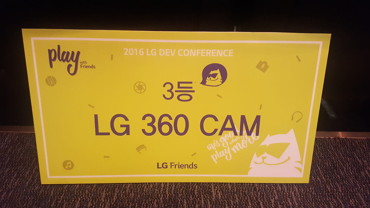 회사에서 대표로 참석했는데 3등 당첨으로 LG 360 CAM을 받기로 하였다.