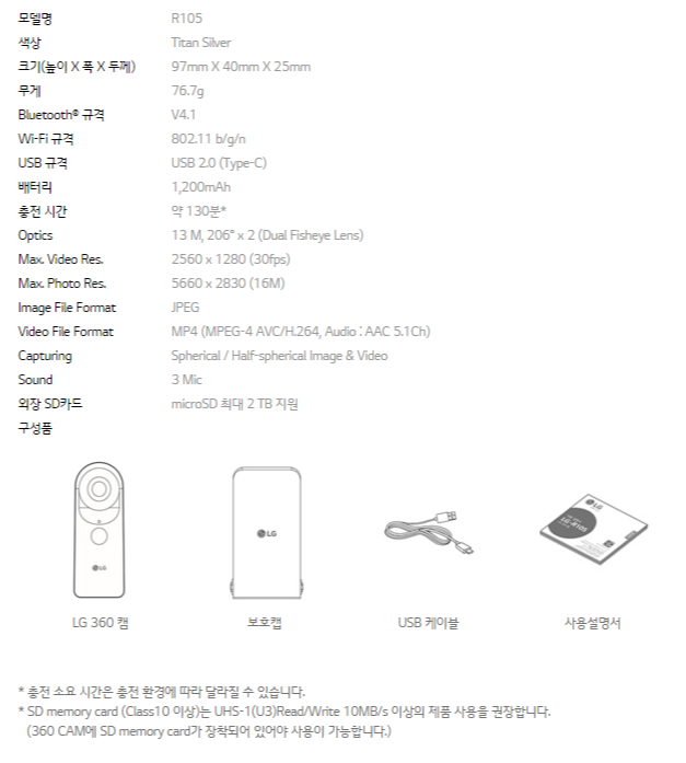 360 CAM 사양은 아래와 같다.