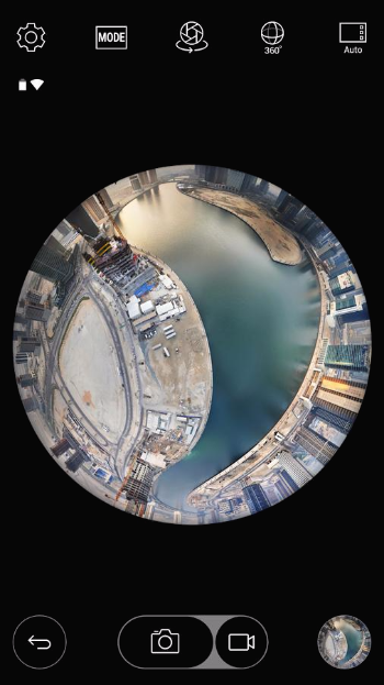 360 º 와 180 º 모드 촬영, 전면 후면 전환, 매뉴얼 모드를 통해 좀 더 다양한 설정이 가능하다.