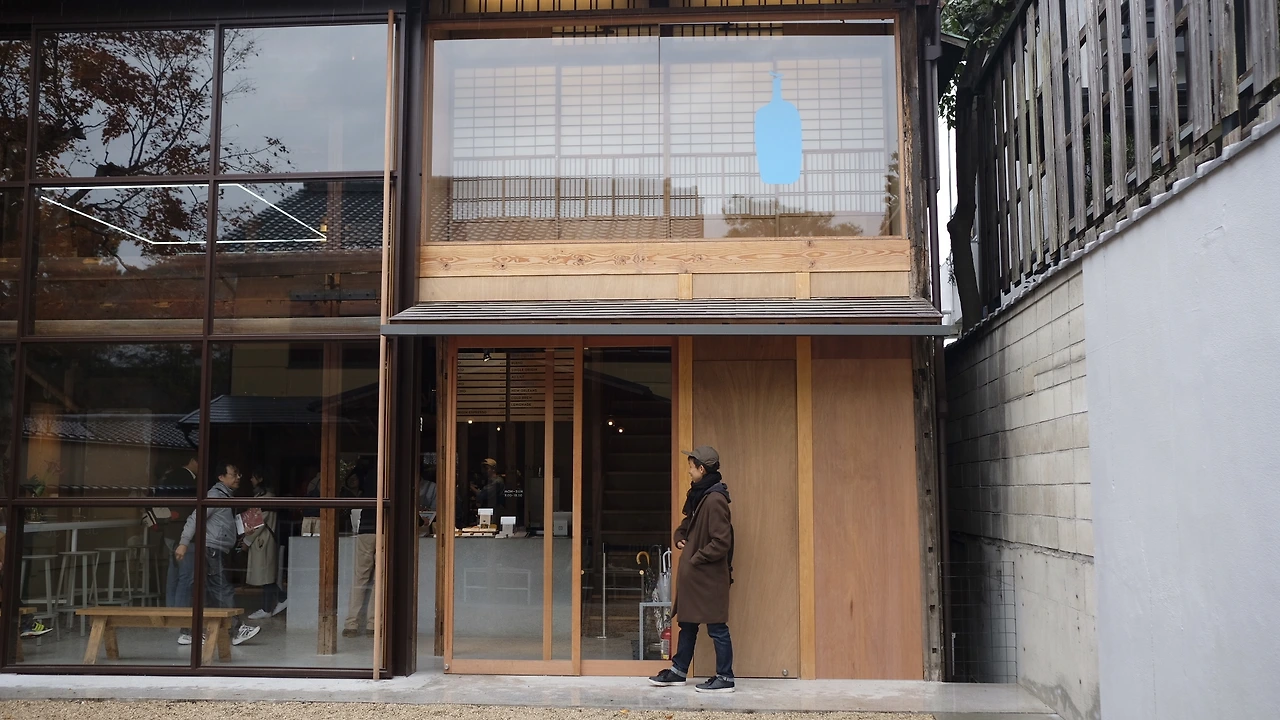 이튿날의 일정은 크게 두가지 이다. 블루보틀과 사바스시. 두 곳 모두 숙소 기준 기모강 건너편 있었다. 하루종일 비가 올 것이라는 날씨에 우산을 챙겨 버스를 타고 블루보틀로 향했다. 의도 한것은 아니었지만, 이틀간의 여행일정 중 주요일정이 모두 카페가 되었다. 숙소에서 버스를 타고 30분여를 달려 도착한 곳은 한적한 교외 느낌이었다. 비는 조금 내리긴 했지만 걷기에 불편한 정도는 아니었다. 우산을 차분히 받쳐 들고 천변을 따라 조금 걸어가니 곧 블루보틀 카페가 나왔다. 커피관련 책과 sns에서 수차례 보았던 카페, 커피 맛은 어떨까.