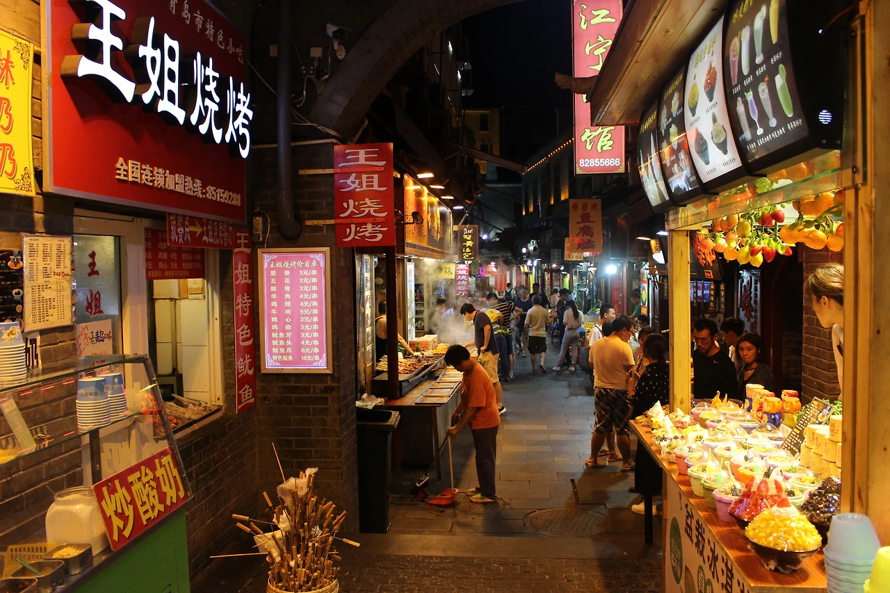 1902년부터 100년 넘게 이어져온 전통시장 골목에 펼쳐진 ‘피차이위엔(劈柴院)’ 에는 각종 해산물, 꼬치, 딤섬, 디저트 등 다채로운 색의 중국 먹거리가 펼쳐져 있다. 중국에 오면 꼭 한 번 와보고 싶었던 상상 속 중국 먹자골목의 모습이었다. 골목으로 깊숙이 들어가 북적이는 인파 속에서 나도 함께 걸었다. 걸음을 옮길 때마다 다양하게 바뀌는 음식 냄새에 후각을 한껏 활용하고 있자니, 내가 일상생활을 벗어나 멋진 곳에 와있다는 걸 실감했다.