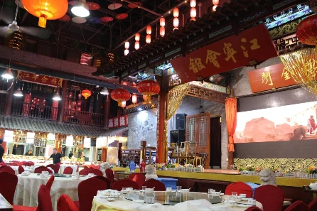 골목 안 ‘강녕회관(江宁会馆)’이라는 식당에 들어서는 순간에는 마치 중국 무협 드라마 속 한 장면에 들어온 기분이 들었다. 내부는 중국풍 건물에 홍등을 걸어둔 객잔의 모습이었으며, 무대에서는 음악을 연주하거나 스크린에 무협영화를 틀어주었다. 의상을 차려입은 종업원이 다가와 자신의 팔보다 훨씬 목이 긴 주전자를 들고 몇 걸음 떨어진 곳에서 우리 테이블의 자그마한 찻잔에 따뜻한 차를 따라주었다. 흥미로운 광경에 카메라를 들자 종업원은 카메라를 의식하며 웃었고, 다음 찻잔에는 더 높이서 따르는 쇼를 보여주었다. 언제 끝나나 해서 계속 카메라를 들고 있자 그도 주전자를 놓지 않고 계속 따르다가 그만 넘쳐흐르고 말았다. 여행 온 사람들에게는 이런 사소한 일조차도 너무나 재미있게 느껴지기 때문에 종업원과 함께 다 같이 웃음을 터뜨렸다.