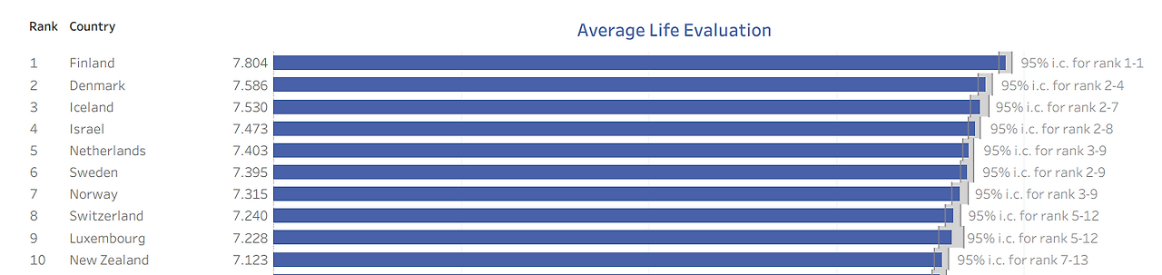 유엔 산하에 지속가능발전해법네트워크(SDSN)가 공개한 ‘2023 세계행복보고서’를 보면, 핀란드는 6년 연속 1위를 차지했다. 반면, GDP가 비교적 높은 미국은 15위, 일본은 47위, 중국은 64위였다. 우리나라는 전 세계 137개국 가운데 57위였다.