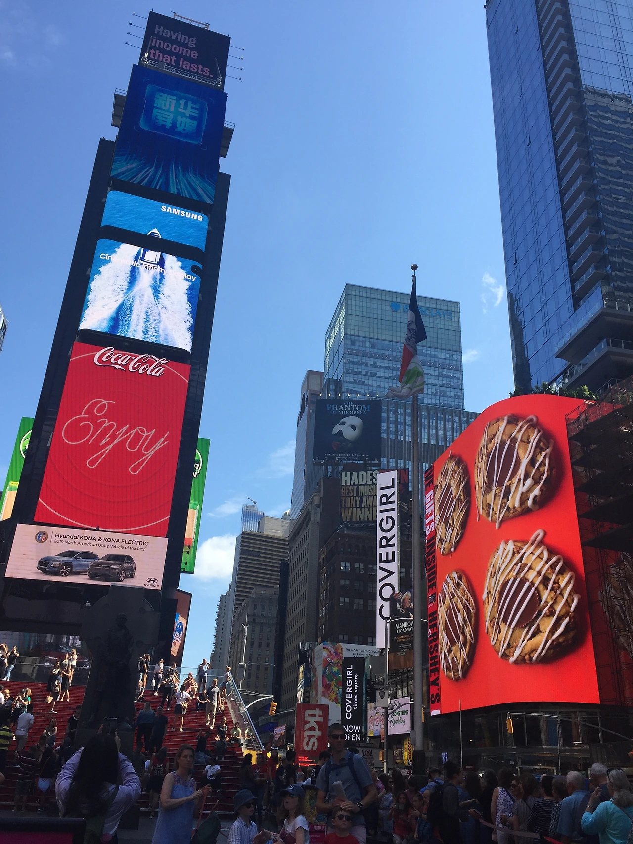 브라이언트 파크와 타임스퀘어는 아주 가까워 tkts의 뮤지컬 티켓을 확인하려 왔다. tkts는 브로드웨이 뮤지컬들을 판매하는 티켓 부스였는데 아직 아침임에도 불구하고 유명한 뮤지컬은 이미 매진인지 들어보지 못한 뮤지컬 티켓만 전광판에 걸려있었다. 하지만 운이 좋다면 유명한 뮤지컬을 예매할 수 있다고 한다.