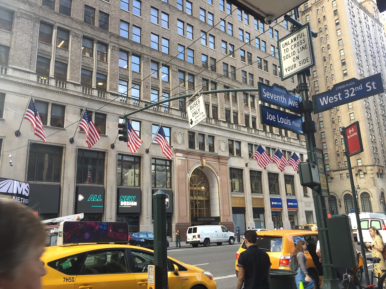 펜 스테이션에 도착했는데 역 안이 너무 넓어 동행자와 한참을 헤맸다. 겨우 입구를 찾아 나온 곳에는 미국 국기가 우리를 반겨주었다. 성조기와 노란 택시를 보니 다시금 뉴욕에 온 것이 실감이 나기 시작했다.