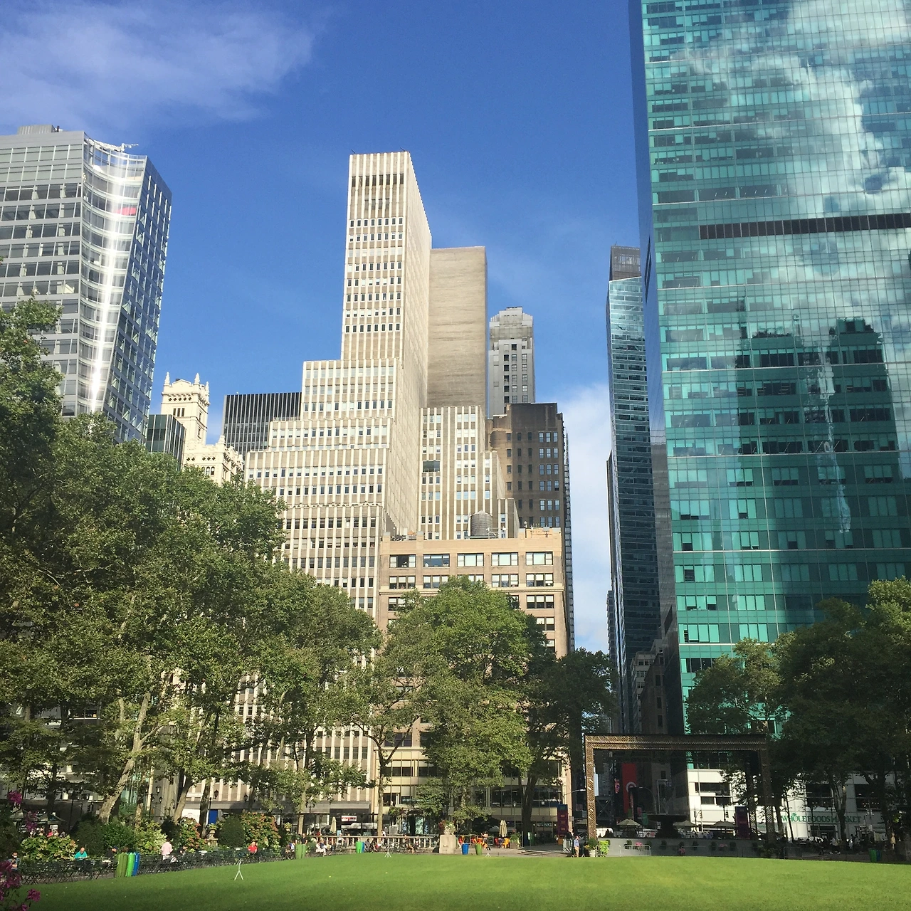걷다가 얻어걸린 브라이언트 파크는 역시나 아름다웠다. 봄의 브라이언트 파크는 아직은 겨울의 한기를 머금고 있어서 차가운 느낌이 강했다. 하지만 사진 속 처럼 여름의 브라이언트 파크의 울창한 나무는 시원한 그늘을 만들어 주고 사람들이 삼삼오오 걸어가는 모습에 살아 있는 느낌을 주었다.