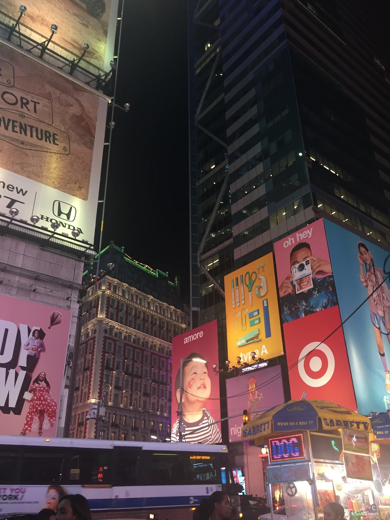 브루클린 브릿지에서 바로 숙소로 돌아가기에는 시간도 아직 이르고 하루가 아쉬워 타임스퀘어 역에 내려 잠시 밤의 타임 스퀘어까지 챙겨주었다. 밤의 타임스퀘어는 또다른 요지경이다. 광장을 가득매운 사람들과 아직 식지 않은 여름날의 공기는 무척이나 들뜨게 했다.