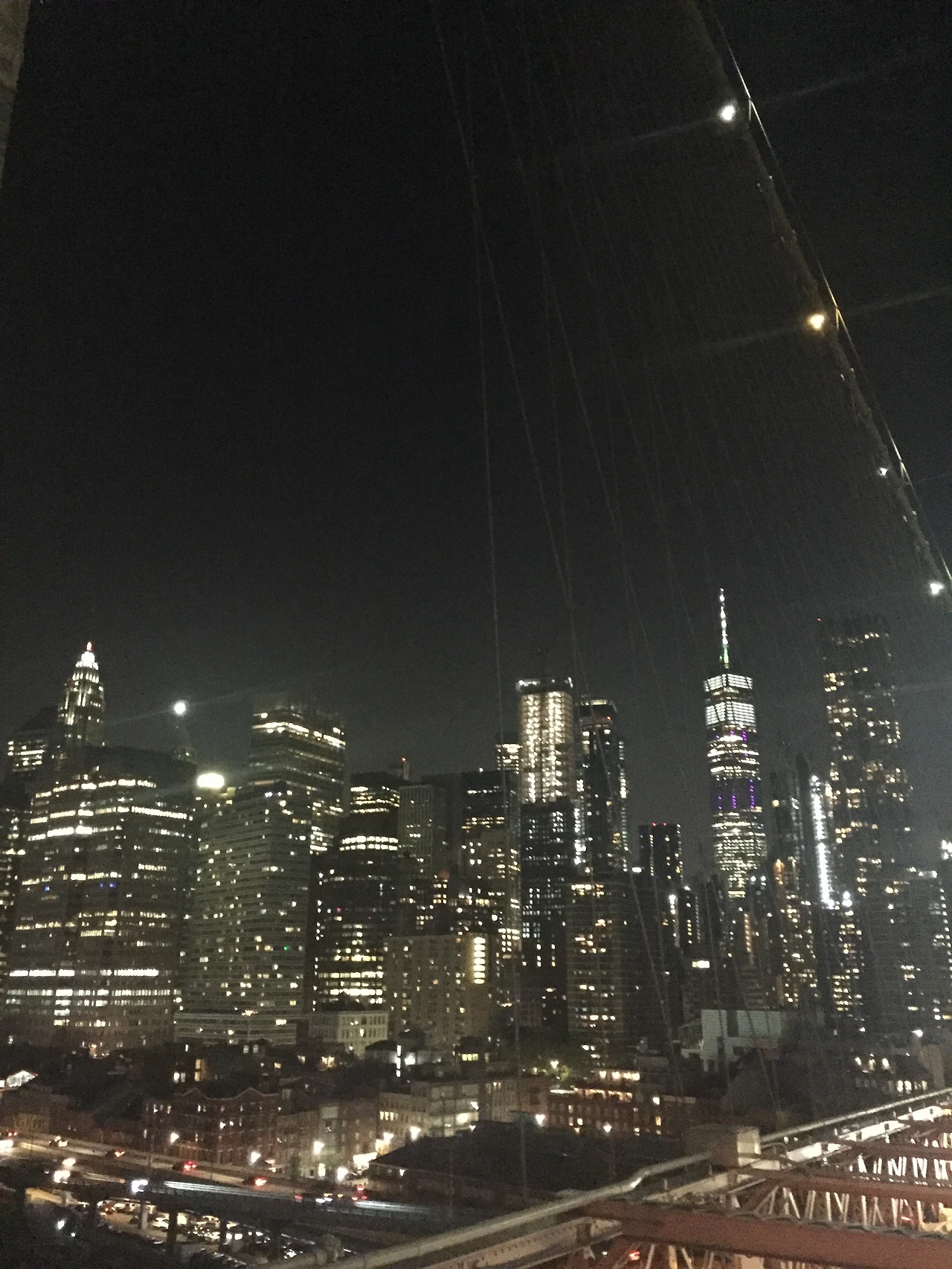 검정색의 밤 시간보다는 노을이 저물어 갈 때 즈음해서 맨하튼 방향으로 꼭 다리를 걷길 추천한다. 왜냐면 그 어스름한 하늘에 별빛처럼 반짝이는 맨하튼의 스카이라인이 예술이기 때문이다. 중간 정도 건너면 야경까지 볼 수 있다.