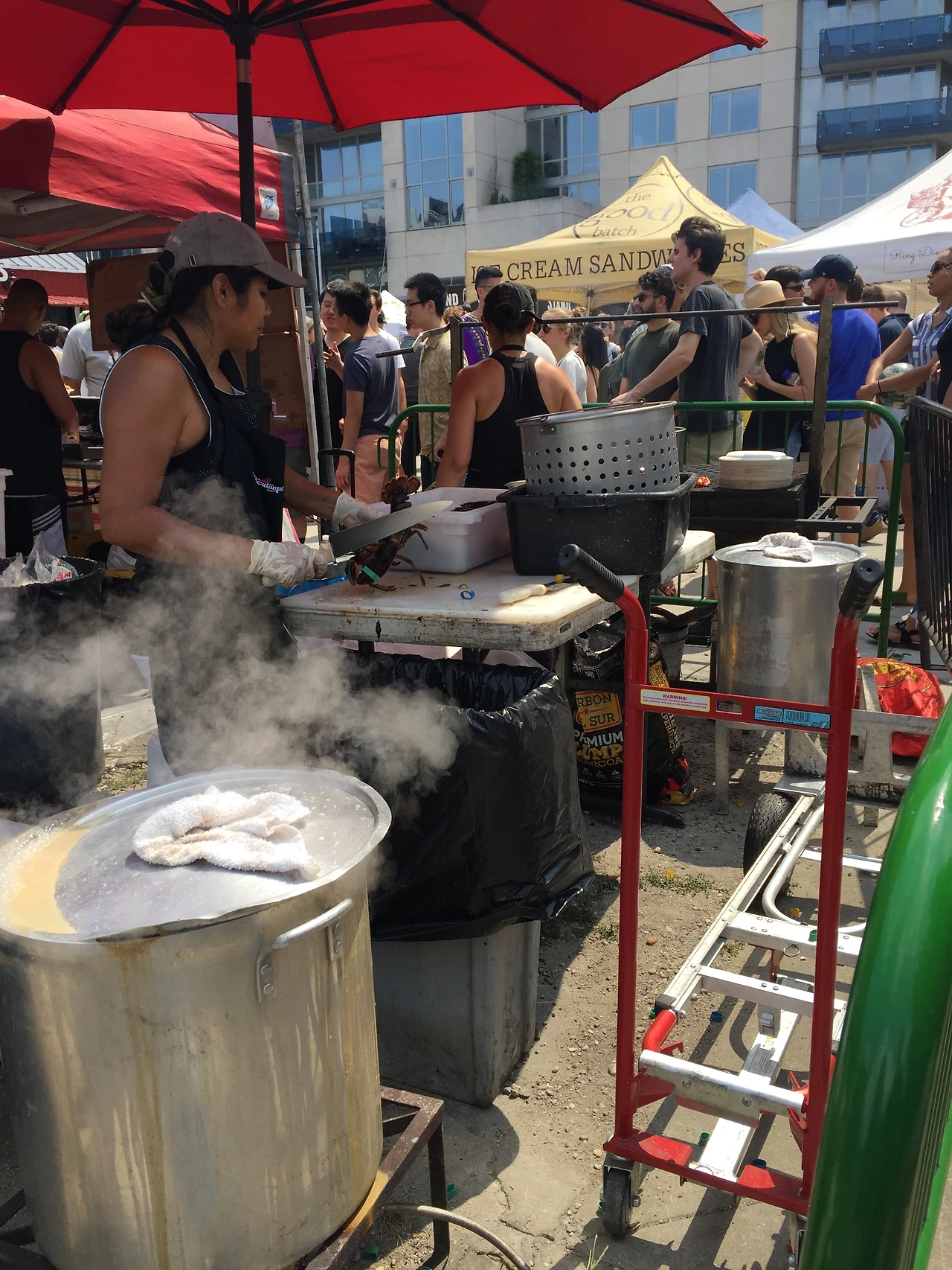그래도 이 곳이 음식을 먹는 곳이라는 것은 인지하고 있어서 아침에 밥을 먹지 않고 버스를 타 브루클린으로 이동하였다. 날씨도 좋아 맨하튼과 다른 분위기를 풍기는 브루클린의 여행이 기대되었다. 스모가스버그에 도착하니 맛있어 보이는 푸드텐트들과 사람 그리고 사람들이 가득했다. 맛있는 건 이미 소문이 났는지 어떤 텐트는 줄이 돌아돌아 길게 늘어져있지만 어떤 곳은 바로 구매도 가능했다.
