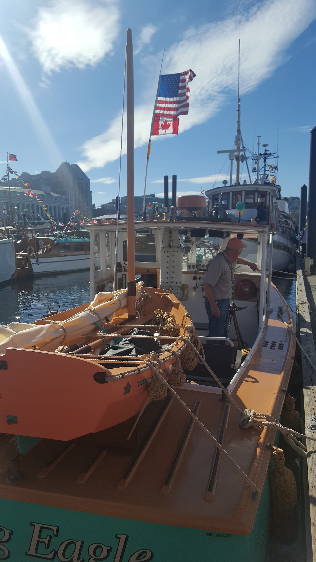 식당에서 보이는 부둣가가 붐벼 왜 붐비는 건지 궁금해서 내려갔는데 이것저것 은 공예품을 팔거나 먹을 것을 팔았다. 와플 파는 사람이 너무 잘생겼다. 그리고 보니 여행 책자에 9월 2일에는 classic boat축제가 열린다고 하더니 이 곳에서 열리는 것이었다. 기부만 하면 입장이 가능해 1달러를 내고 들어가 보았다. 그곳은 평소에는 일반인에게 공개도 안 되는 곳이라고 한다. 보트들은 이전에 영화 덩케르크와 맘마미아에서 보던 그 보트들이었다. 너무 신기해 손으로 쓰다듬기도 하고 사진을 찍었다.
