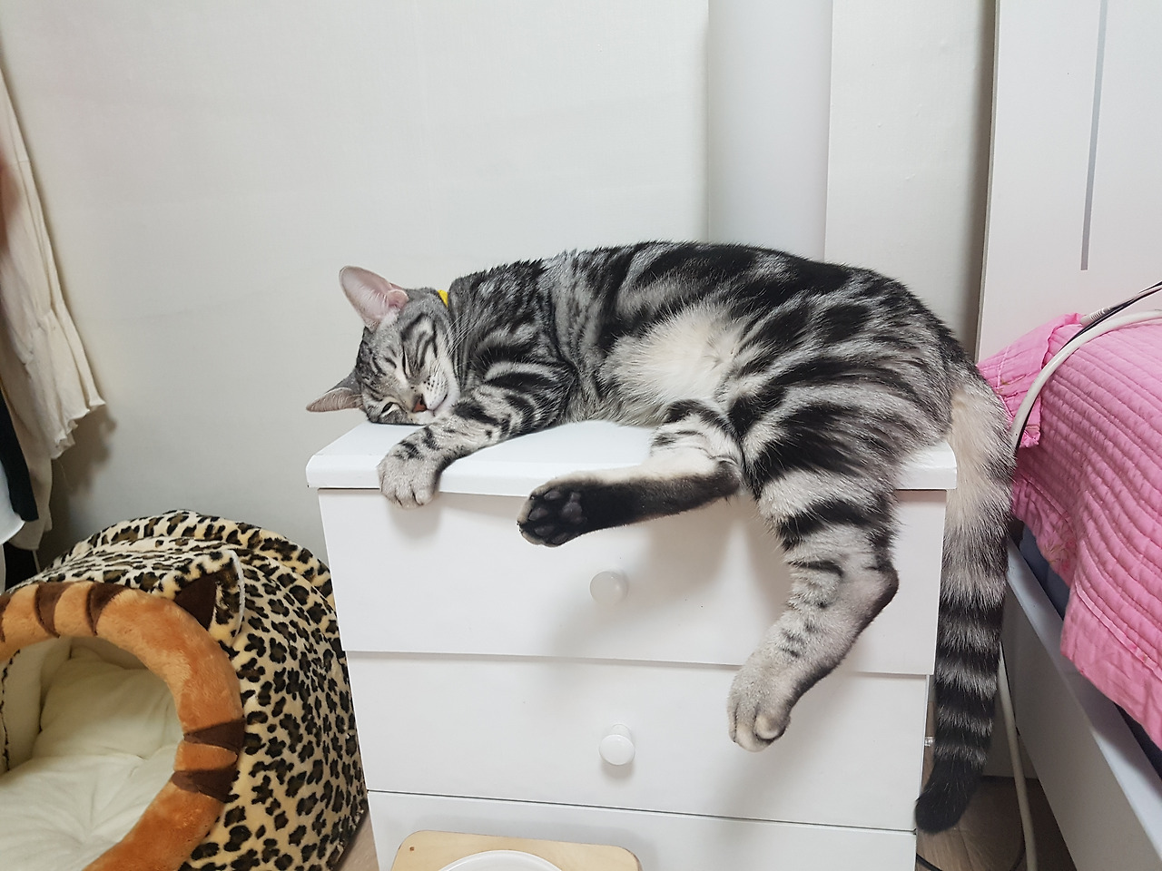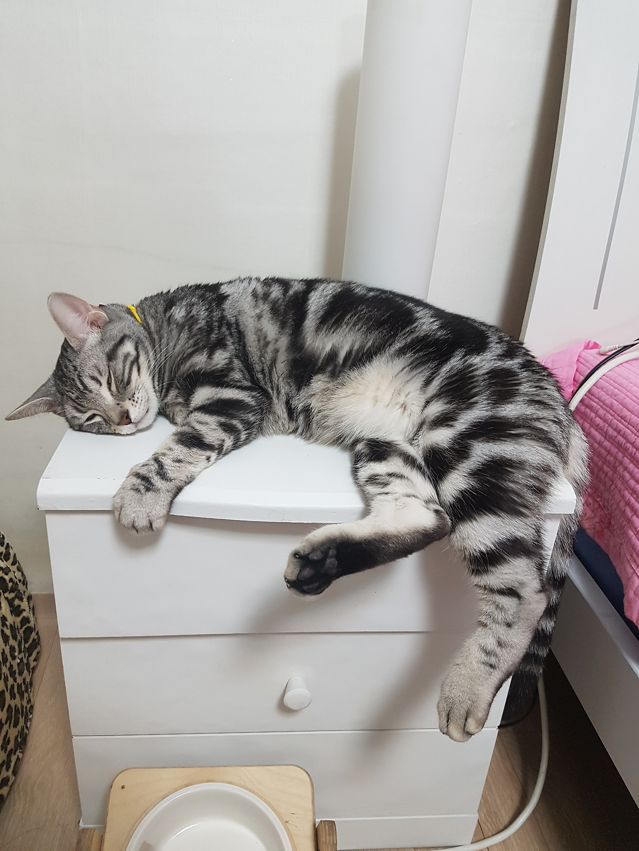 굳이 커다란 침대 놔두고 작은 서랍장에 누워서 불편하게 잠든 소다. 스트레스를 완화시키고