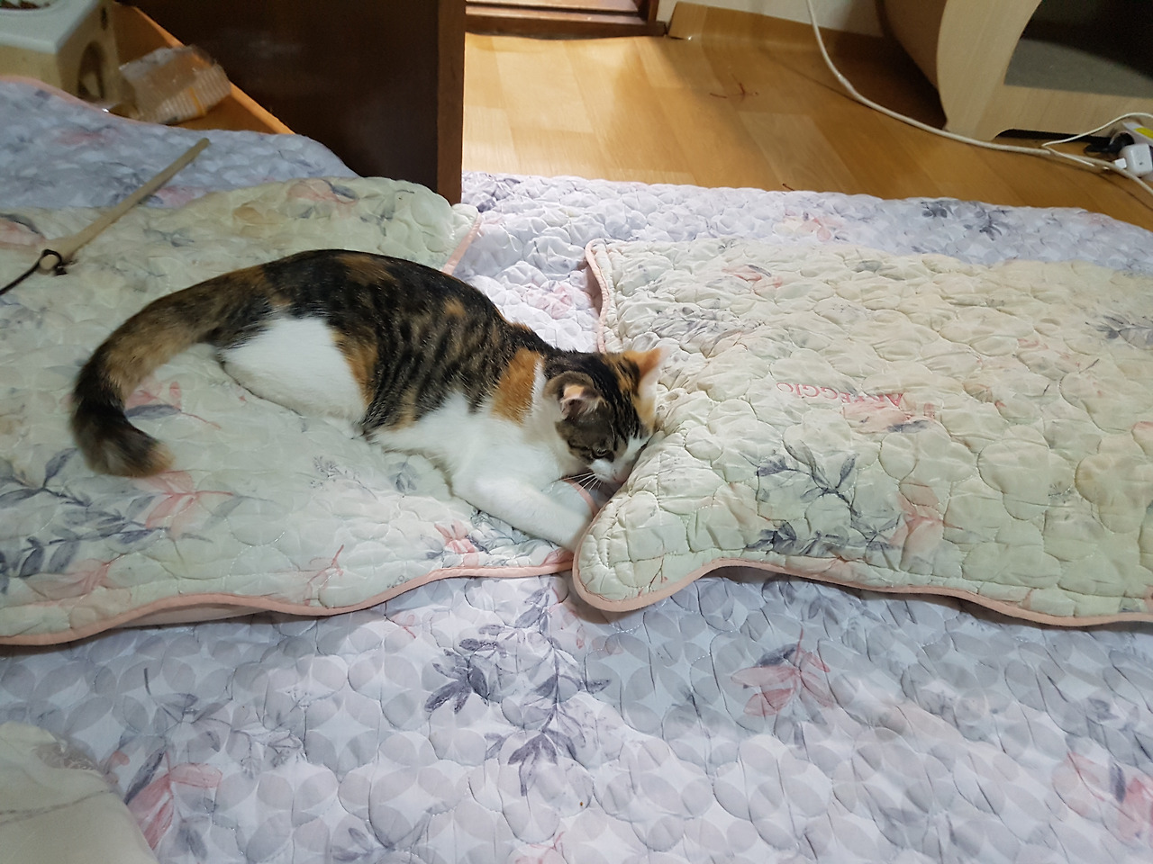 더이상 아깽이가 아니다. 손바닥 보다 작았던 나의 아깽이는 팔뚝 처럼 길어졌다.