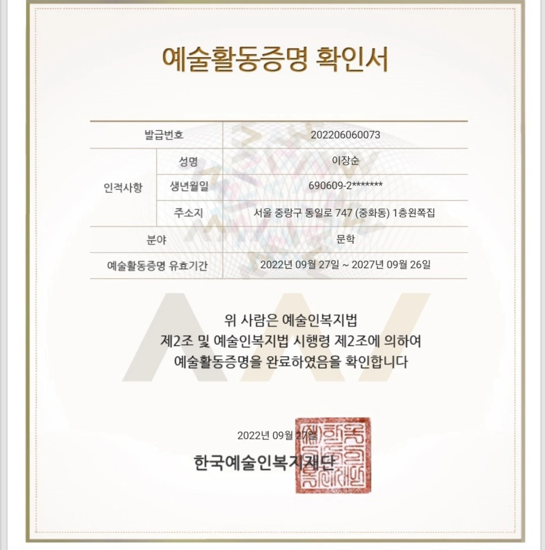 예술인 활동증명