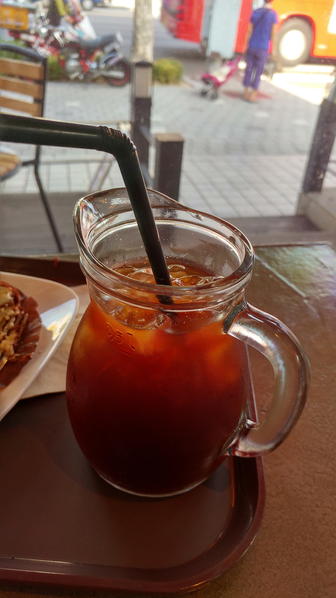 달콤한 아이스커피를 마신다.