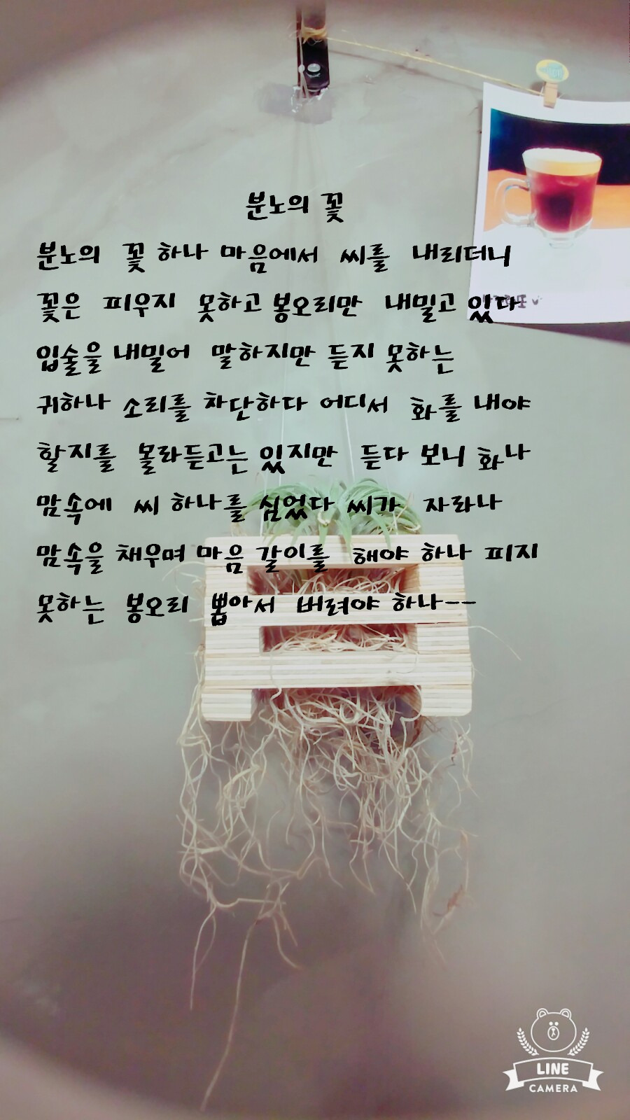분노의 꽃 하나 마음에서 씨를 내리더니 꽃은 피우지 못하고 봉오리만 내밀고 있다 입술을 내밀어 말하지만 듣지 못하는 귀하나 소리를 차단하다 어디서 화를 내야 할지를 몰라 듣고는 있지만 듣다 보니 화나 맘속에 씨 하나를 심었다 씨가 자라나 맘속을 채우며 마음 갈이를 해야 하나 피지 못하는 봉오리 뽑아서 버려야 하나----