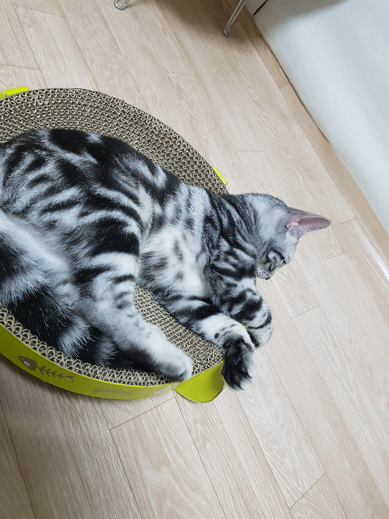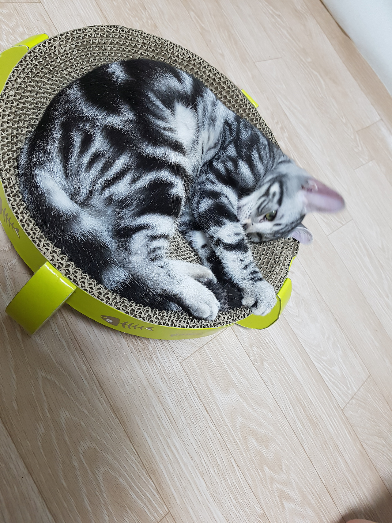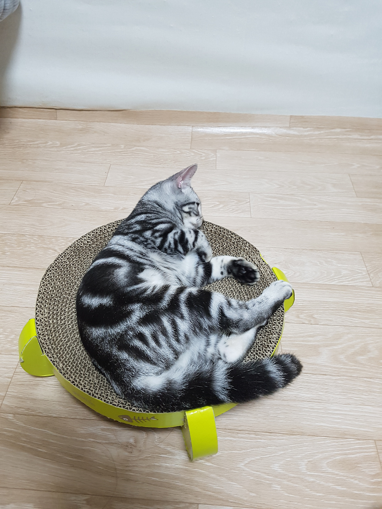 캣닢 가루가 같이 들어있기에 가루를 솔솔 뿌려주었더니 킁킁거리면