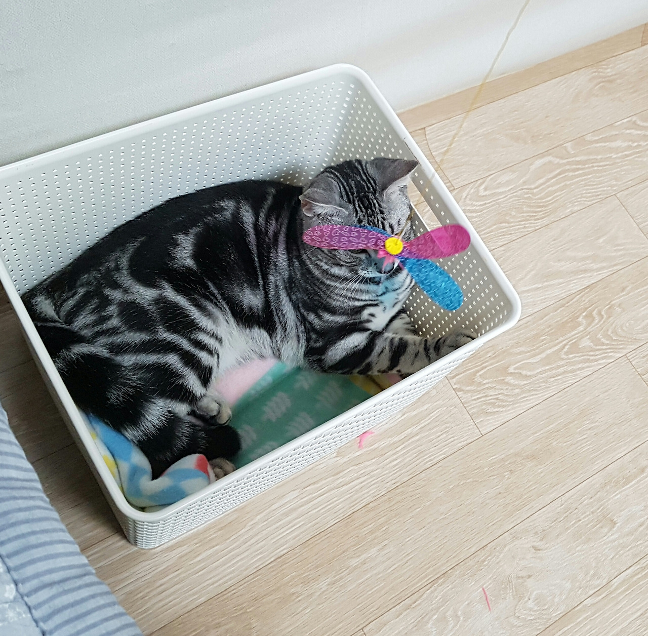 잠자리 장난감에 미친 듯이 춤추는 널 보면 반성 중이다. 아무래도 얌전해진 것이 아니라, 익숙한 장난감에 싫증이 난 거 같다. 고양이님 ,반려묘님 집사의 우둔함을 용서하기를..