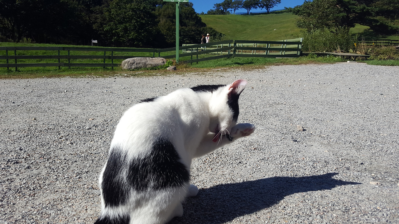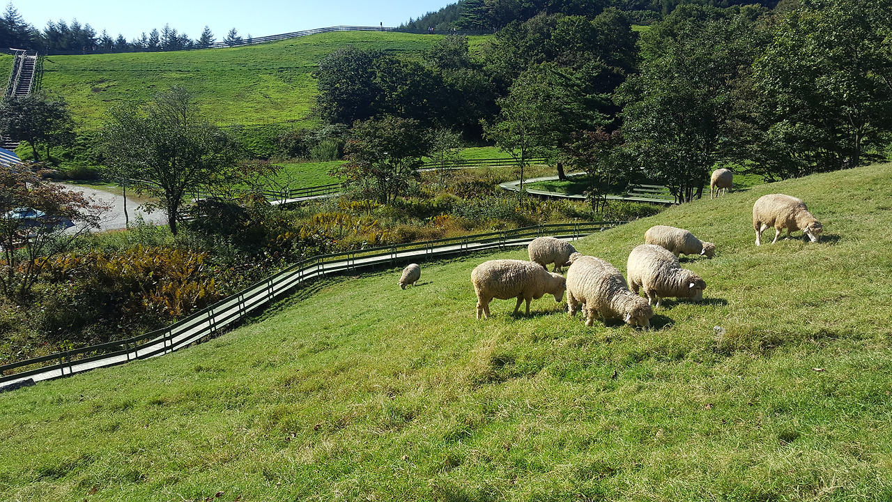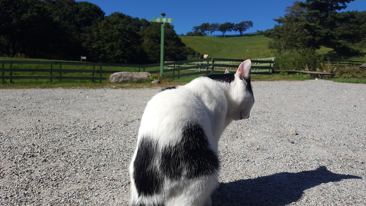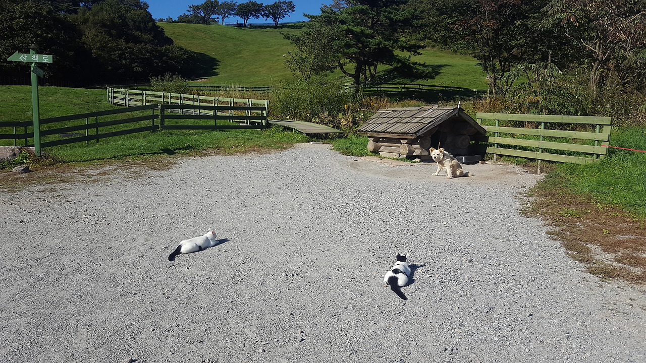 목장을 찾아가는 분이 계신다면 간식이라도 사가시면 감사하겠습니다. 대관령 양떼목장에는 눈처럼 하얀 고양이 자매가 자유롭게 살아가고, 고양이 자매 옆에는 고양이가 경계 중인 개와 푸르른 목장에는 한가롭게 풀을 뜯고 있는 양 수백 마리가 풍경화처럼 펼쳐집니다.