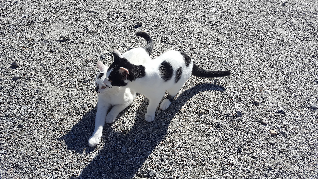오천 원. 표를 구매하고 올라가면 하얀 고양이 두 마리가 반겨줍니다. 사람을 잘 따라서 귀엽고 사랑스러운 고양이 자매, 저 아기중 한아기를