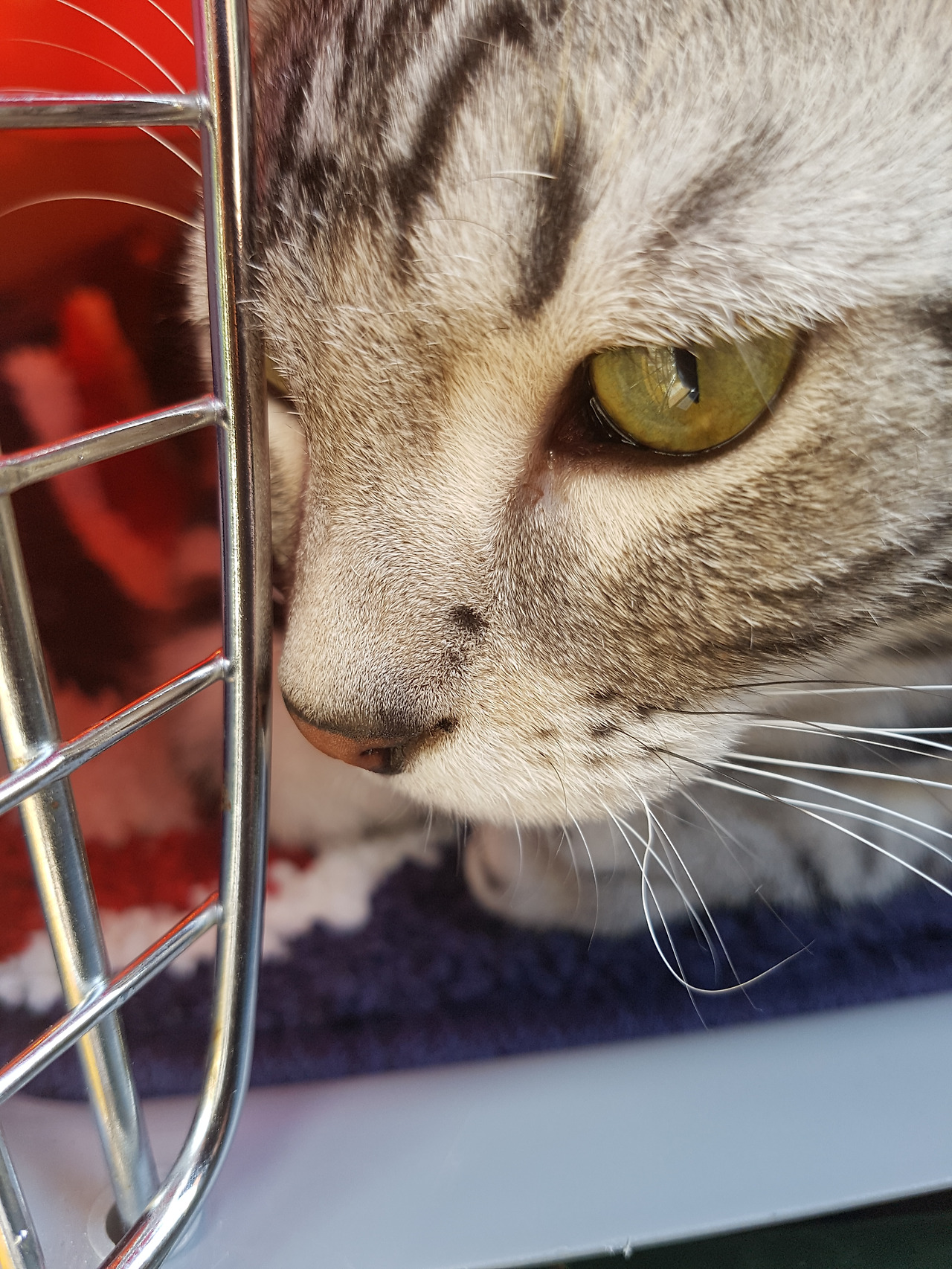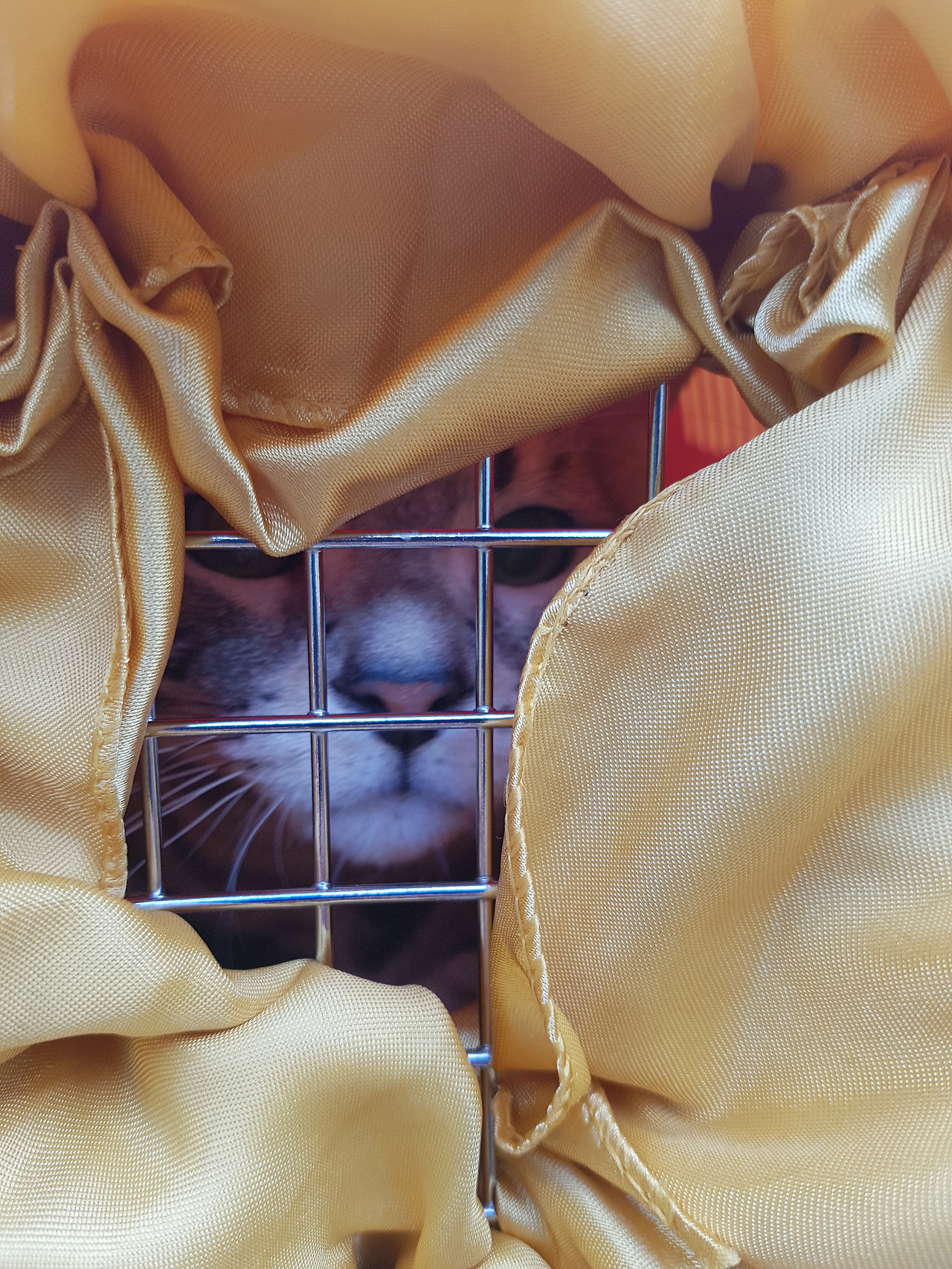 이동장에서 눈만 빼꼼 보이는 반려묘