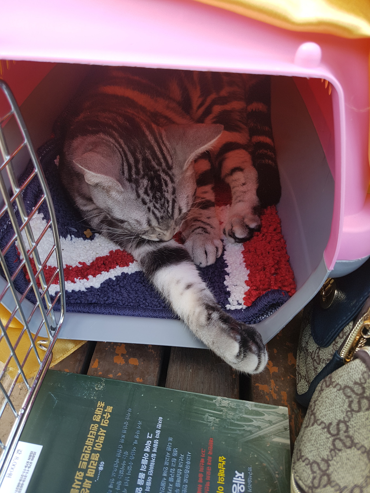 한 발자국도 이동장에서 나오지 않으려 하는