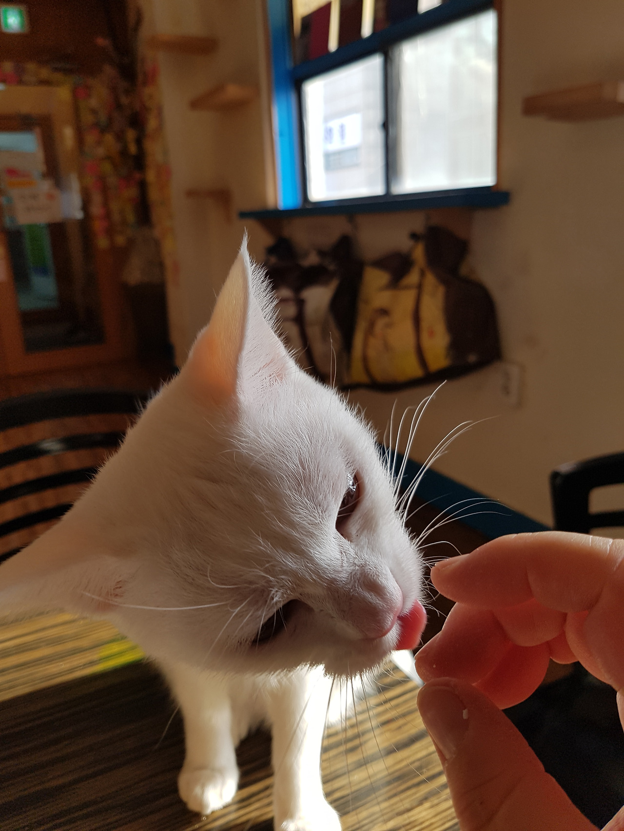 이나 소다와 나의 거리는 늘어난다. 소다는 지금 나를 반갑지만 반갑지 않은 좋아하지만 두려운 아이러니를 겪을지도 모르겠다. 사랑받고 싶은 마음과 건강을 지키고 싶은 집사의 마음에서 삐그덕 거리다가 바람 아닌 바람을 맞으러 왔다. 냉정하게 고양이 카페에서 내 반려모에게 보탬이 되는 소스를 듣고 싶었다. 고양이 카페에서 손
