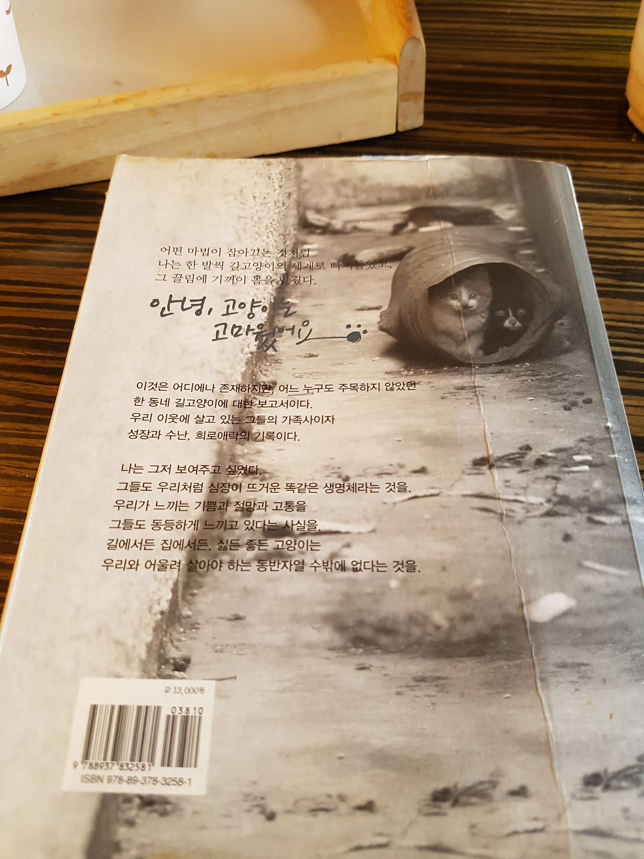 안녕 고양이는 고마웠어요.라는 제목의 길고양이들의 이야기를 담고 있는 책을 발견했다. 순간 너무 기뻐서 소리를 지를 뻔했다. 사진으로만 봤던 아이들이 사진과 사연과 마음을 담고 있었다.