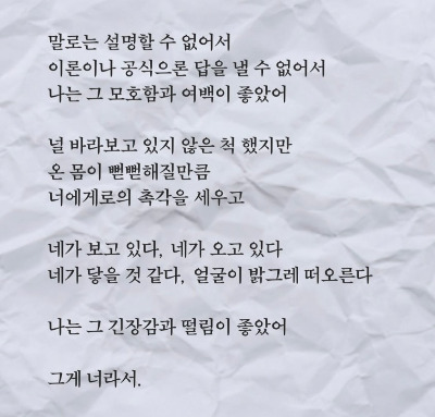 너를 좋아하는데 이유 따윈 개나 줘 버릴까 싶다.