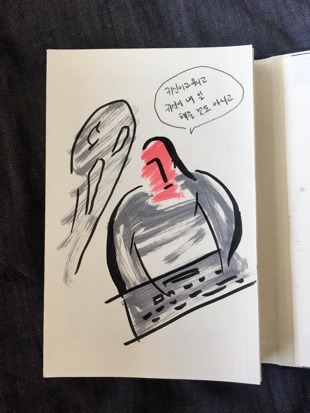그래, 마감을 못했을 때 나에게 다가 올 미래가 더 무섭지. 근데 사무실에 귀신이 있다면 과로사한 귀신일까.
