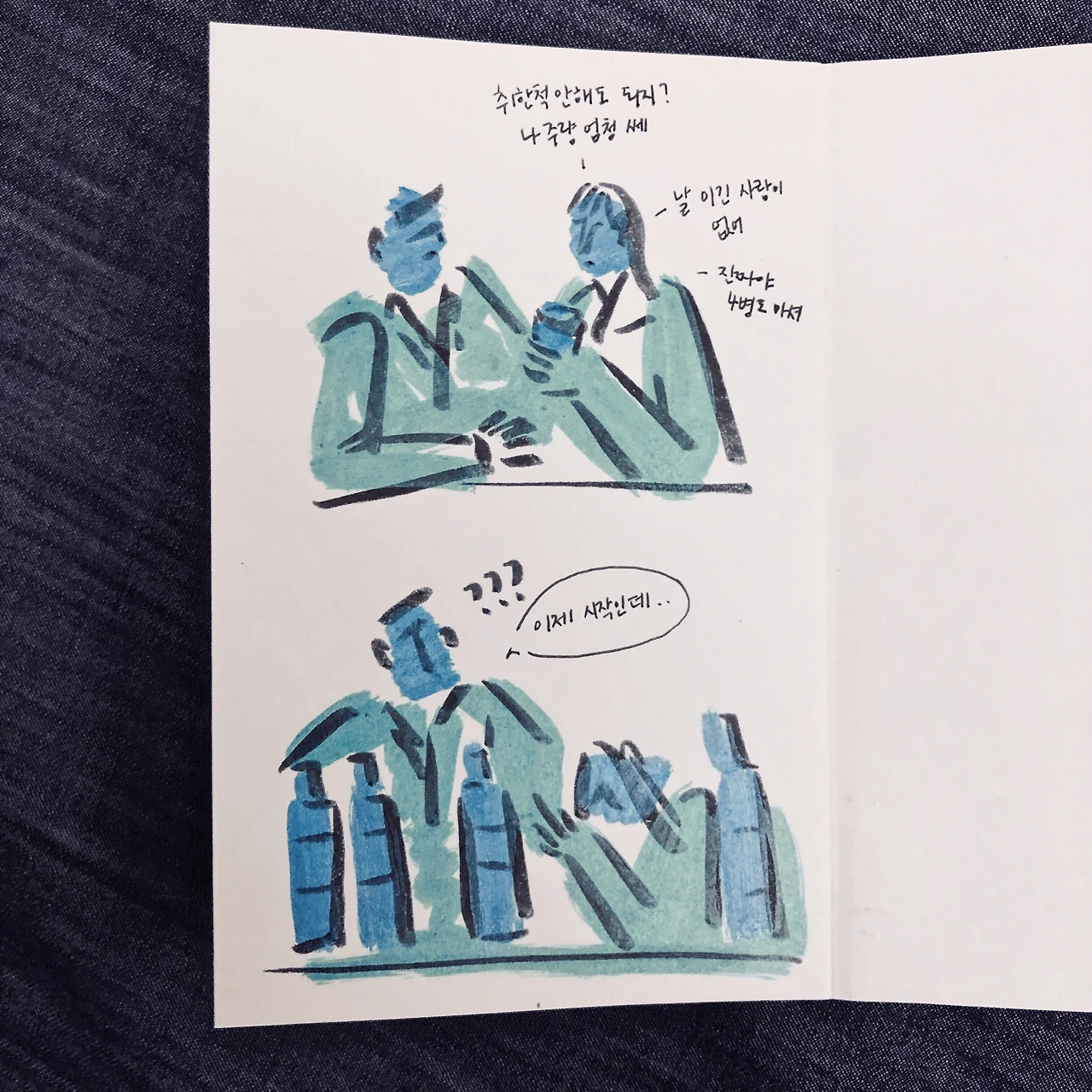 유치한 이야기지만, 술 부심이 있다. 맥주 반 캔 마시고 “아- 취한다” 하는 알쓰들이 주변에 많아서 일지도. 너의 앞에서 취한 척을 해야 할까. 너무 잘 마시면 매력 없다던데. 내가 너무 잘 마셔서 자존심이 상하진 않을.....ㄲ...ㅏ...원ㄹ..ㅐ잘..ㅁ ㅏ..