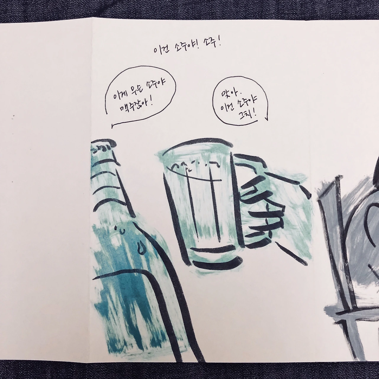 “맞아! 이건 소주야 그치? 근데 왠지 맥주 맛이 나는 기분이야”