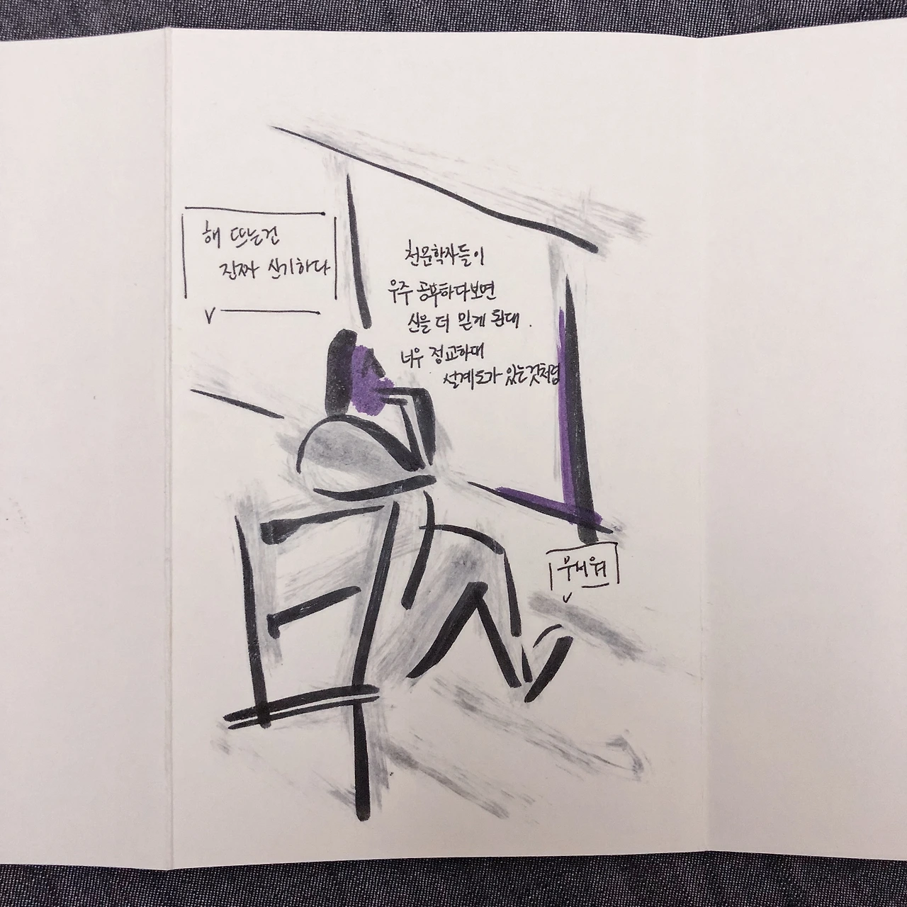 “천문학자들이 우주를 공부하다보면 오히려 신을 믿게된대. 마치 설계도가 있는 것처럼 정교해서”