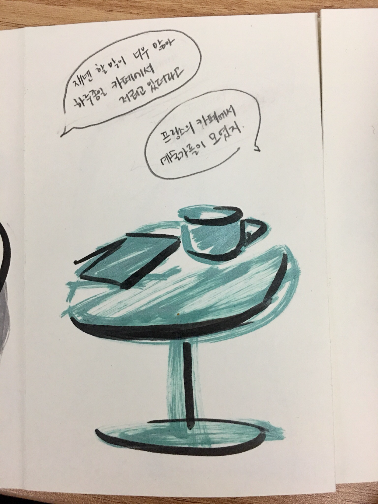 A의 말을 듣고나니 카페에 앉아있는 사람들은 무슨 이야기를 하나 궁금해졌다. 그리고 처음이자 마지막으로 불어를 배우고 싶다는 생각이 들었다.