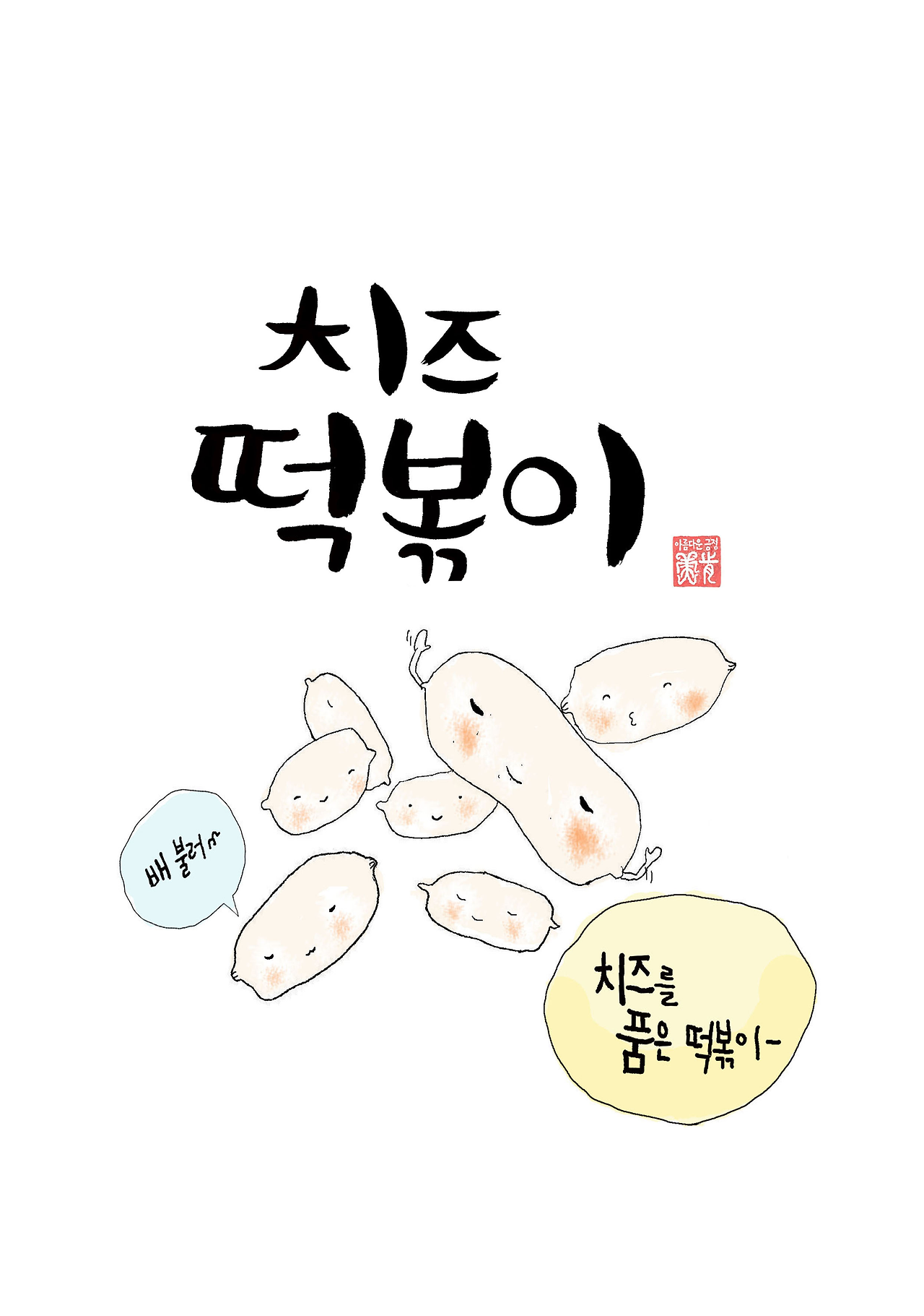 떡 캐릭터와 동양적인 붓글씨와의 만남은 어떨까? 붓글씨 ‘캘리그래피가’ 필요하다.