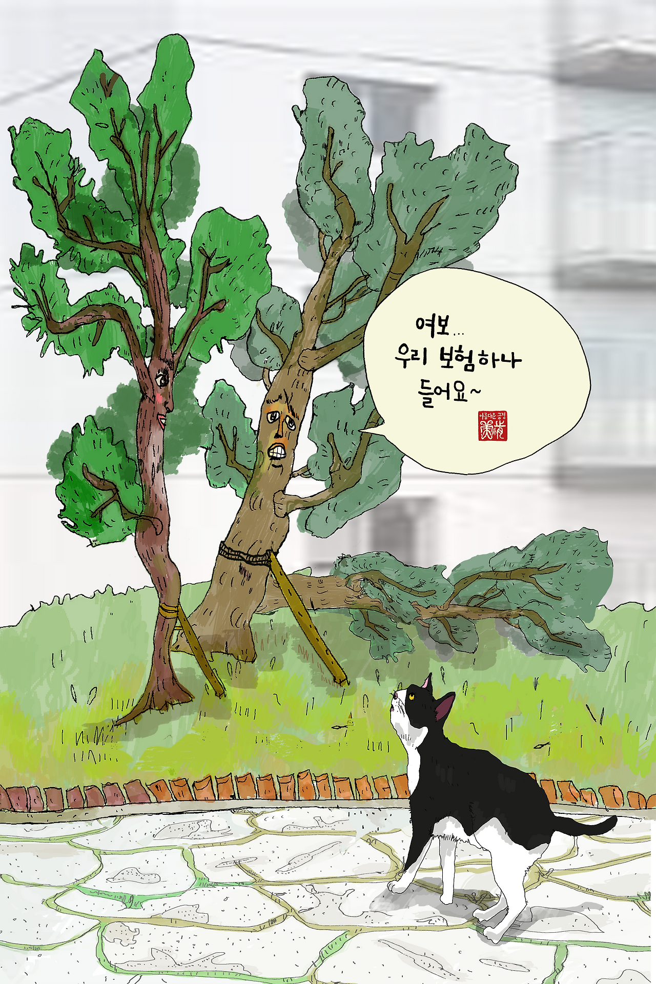 경비아저씨들이 사고지점 나무를 정돈하는 모습을 보며 집으로 돌아왔다.