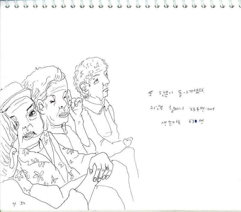 당시에도 대두되었던 '위안부 할머니'신문 기사를 보며 그림숙제를 담아냈다.