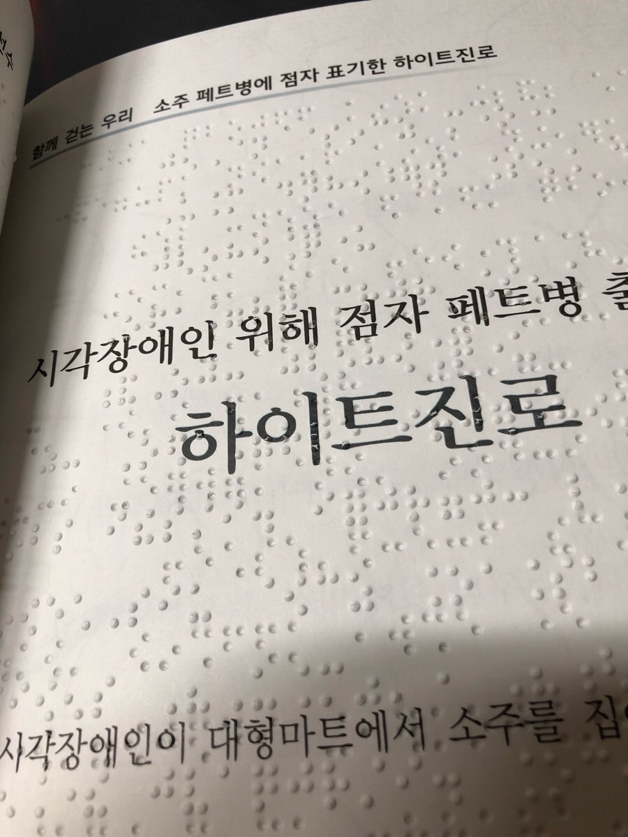 커다란 활자 위에 점자가 함께 표기되어 있기에