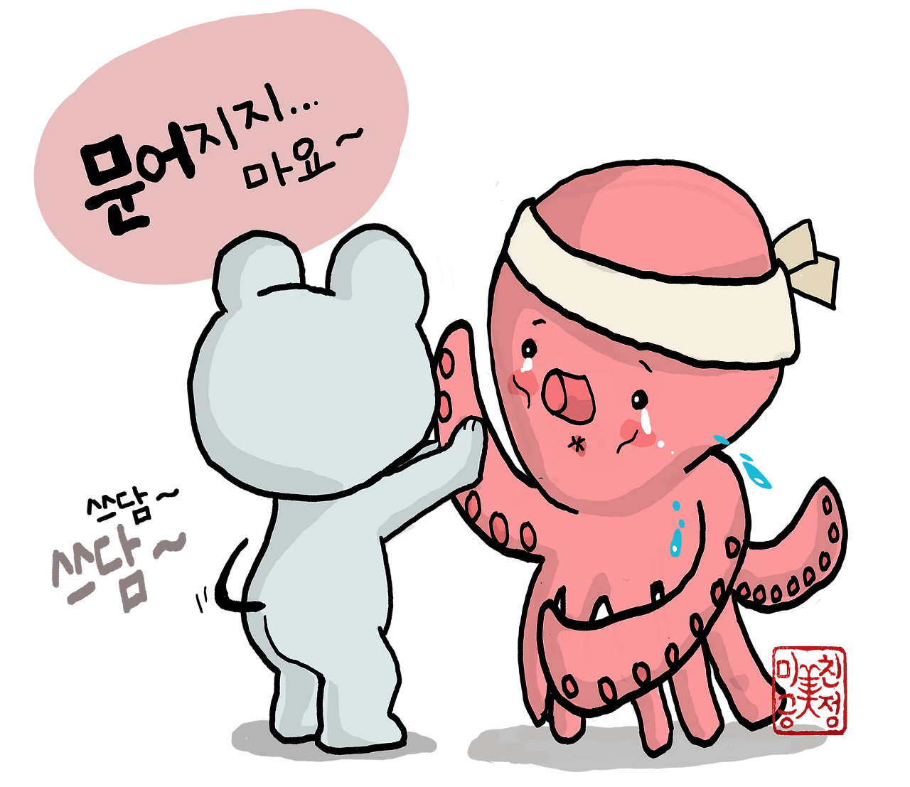 컷마다 단순하고 귀여운 캐릭터 이미지나 말풍선으로 감정을 표현한다.