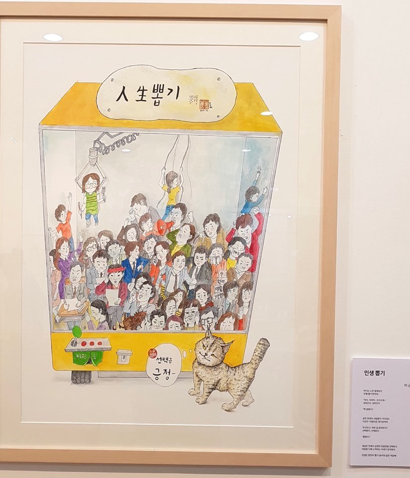 집게로 인형을 잡을 수 있는데 그걸 ‘인생 뽑기’로 재구성한 작품입니다.