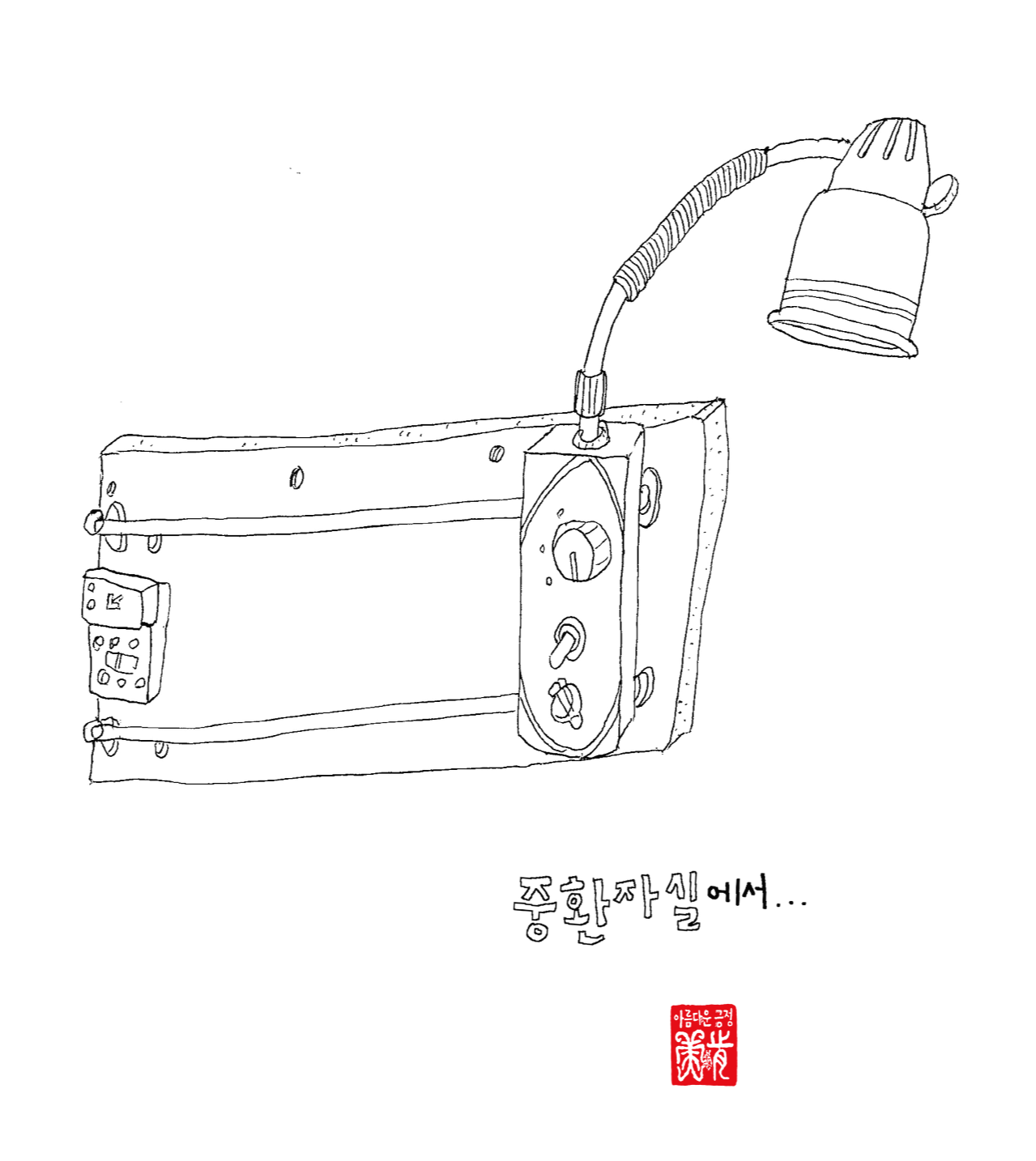딸의 빡빡 밀은 머리가 듬성듬성 자라 올라온다. 뇌압으로 얼굴이 퉁퉁 부은 까닭에 누가 보더라도 나이보다 훨씬 어리게 본다. 최근 몸을 회복하는 데 도움이 된다고 지인이 적극 추천한 보양식을 알게 됐다. 그건 바로 곰의 '쓸개즙'이다. 그리고 이걸 섭취할 방법을 찾았다. 벌리지 않는 입을 대신한 다른 구멍을 활용하기로 했다. 바로 '콧구멍'에 호스를 연결해서 주입시키는 방법이다. 미개한 방법이라고 할지 몰라도 회복에 힘이 되고자 하는 에미의 '모정'을 막을 수 없다. 그게 효력을 발휘하는 걸까? 어쩌면 남성 간호사도 힘으론 딸을 못 당할 듯. 힘이 장난 아니다. 풀린 고삐를 채우듯 다시 왼손을 복대로 묶어 침대에 겨우 고정시켰다. 그때 내게 누군가 말을 걸어왔다. "따님 때문에 많이 힘드시지요..?" 60대 초반으로 보이는 덩치가 꽤 좋은 여성 '요양 간병인'이다. 당시 옆자리 환자 간병을 맡고 있었는데 얘기를 들어보니 본인이 맡은 할머니 환자가 다른 곳으로 보내진 다며 그만두게 되었다고 한다. 그래서 이제 자신이 딸아이를 돌봐도 되겠냐고 나에게 묻는다. '휴.. 요양 경험이 많아 뵈는데 정말 다행이다!' 사실 간호 경험이 전혀 없는 식구들끼리 돌아가면서 병상을 지키는 건 아무래도 무리가 있다. 기쁘게 OK 했다.
