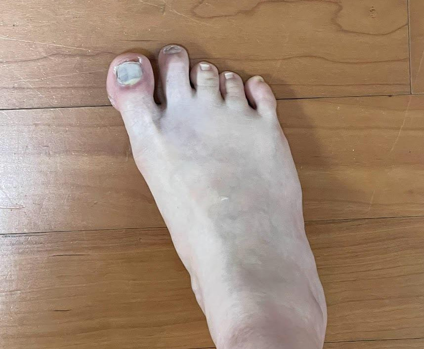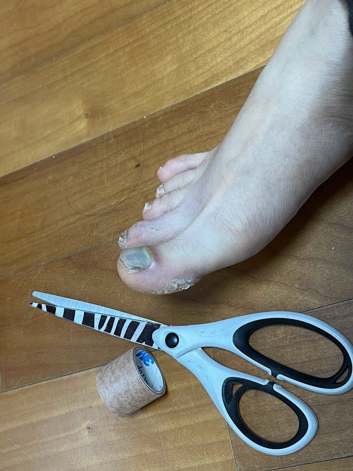 발톱이 하얗게 들려서 오른발을 디딜 때마다
