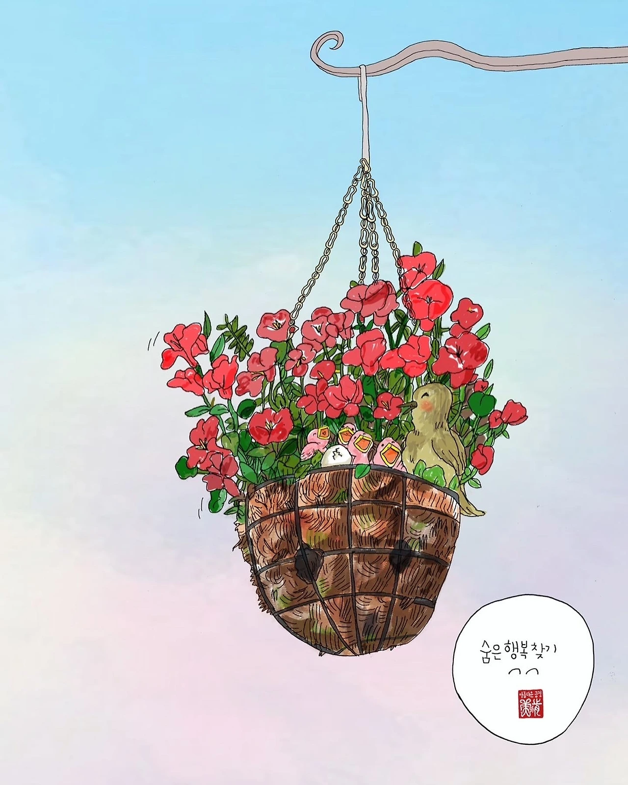 -우연히 숨은 행복을 발견할 때가 있다. 캐나다의 어느 뜰에서..ㅎ#일러