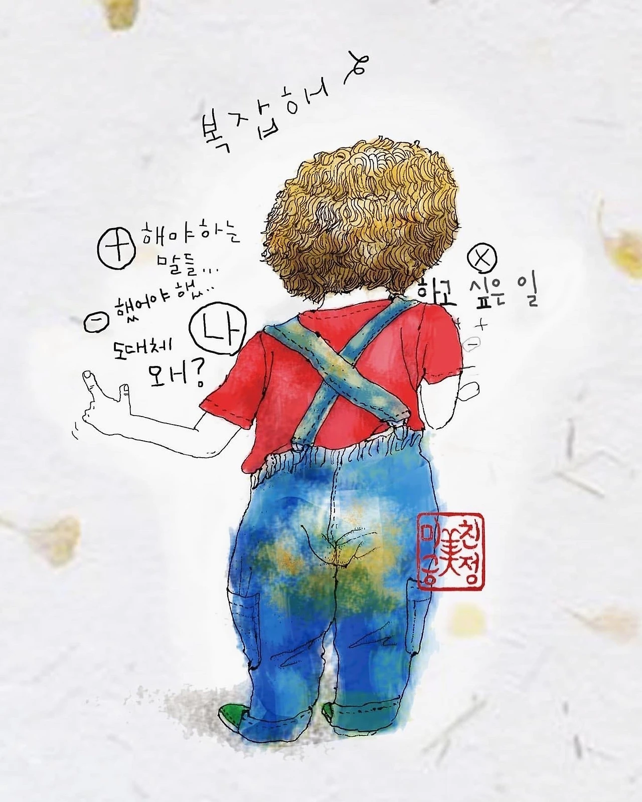 여러 개로 보이는 이상한 세상을 마음을 다해 느린 손으로 신나게 그리는 아름다운 긍정 ‘미긍(美肯)’ 입니다. •강연/그림 문의 : xmas222@naver.com