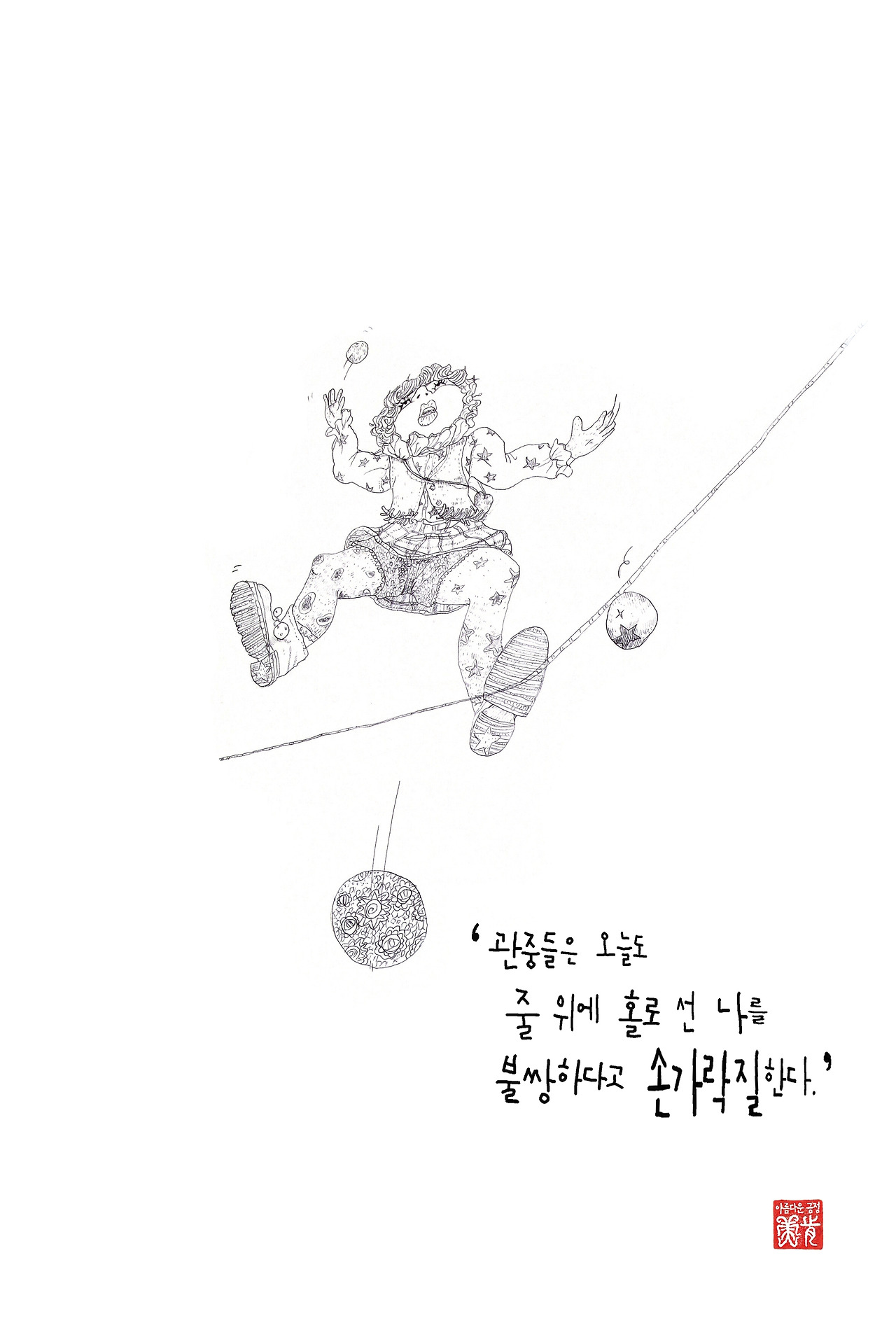 ‘광대의 꿈'에서 내가 표현한 줄 타는 광대를 보며 나의 장애를 본인의 아픔에 비유하며 공감하던 그녀. 현재의 삶이 시한부로 판정된 시일을 넘겨