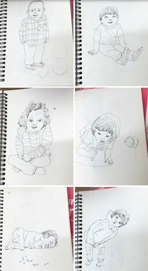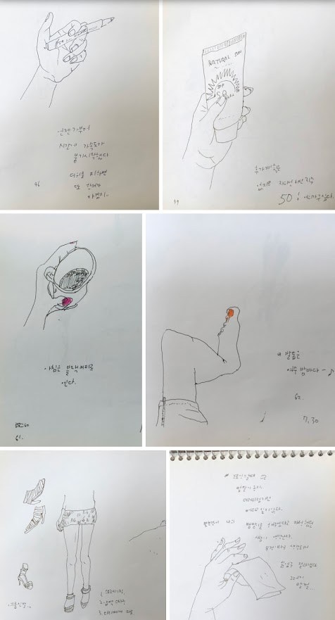 손을 계속 그리다 보니 여러 가지 표정이 담기고