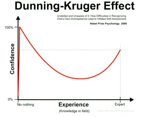 심리학 연구 결과 중에 이런 것이 있다. '무지할수록 자신이 무엇에 무지한지조차 모르기 때문에, 자신의 성취와 능력을 높게 평가한다'