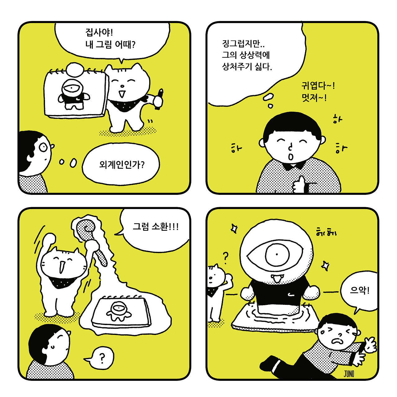 그게 유령인지 내가 피곤해서 헛 것을 본 것일지도 모른다. 하지만 난 세상에 유령이 존재한다면, 그런 모습이지 않을까 생각한다. 그 후로는 유령 같은 건 본 적이 없다. 다행이다. 계속 그런 게 보였다면 난 아마 일러스트레이터가 아닌 영능력자로 인정받아, 유령퇴치를 하고 다니고 있을지도 모르니까. 그건 그대로 피곤하고 스트레스받을 것 같다.